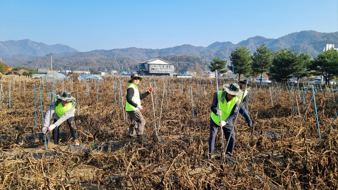 5일 강원 춘천시 소재 가지·고추 재배 농가를 찾은 백대연 경제기획부장 등 임직원 20여 명은 하우스 정비 및 제초 작업을 도왔다.