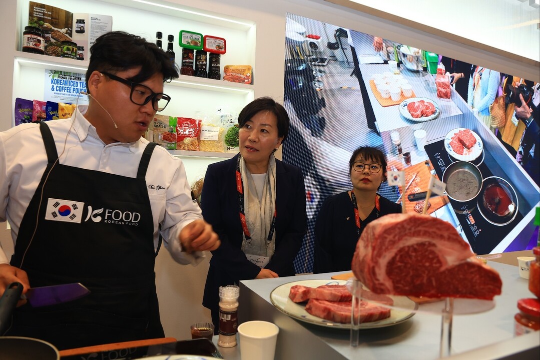 송 장관은 중동·아프리카 지역 최대 박람회인 걸푸드(Gulfood)에 참가한우리 수출기업을 격려하고, 인플루언서와 소비자를 대상으로 할랄 인증 한우 홍보와 함께 할랄식품 시장 동향과 소비 트렌드 등을 점검하였다.