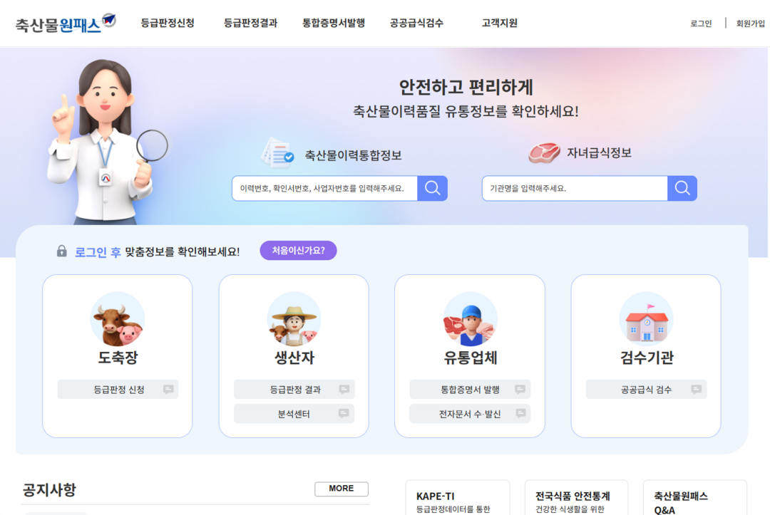 축산물품질평가원은 지난 2025년 기능 개선 사업을 통해 애니 아이디 시스템을 구축하고, 축산물 원패스 누리집 로그인 화면에 해당 기능을 적용했다.