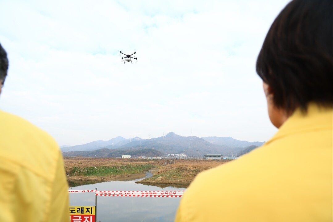 이어 곡교천 철새도래지에서는 드론과 광역방제기 소독 시연을 점검하며 “11월에 겨울 철새 약 133만수가 국내에 도래, 10월 대비 111.4% 증가했고, 야생조류에서 H5N1·H5N6·H5N9 등 3개 혈청형이 확인되는 등 위험도가 높다”며 철새도래지 출입통제와 소독 등 강화된 방역 필요성을 당부했다.