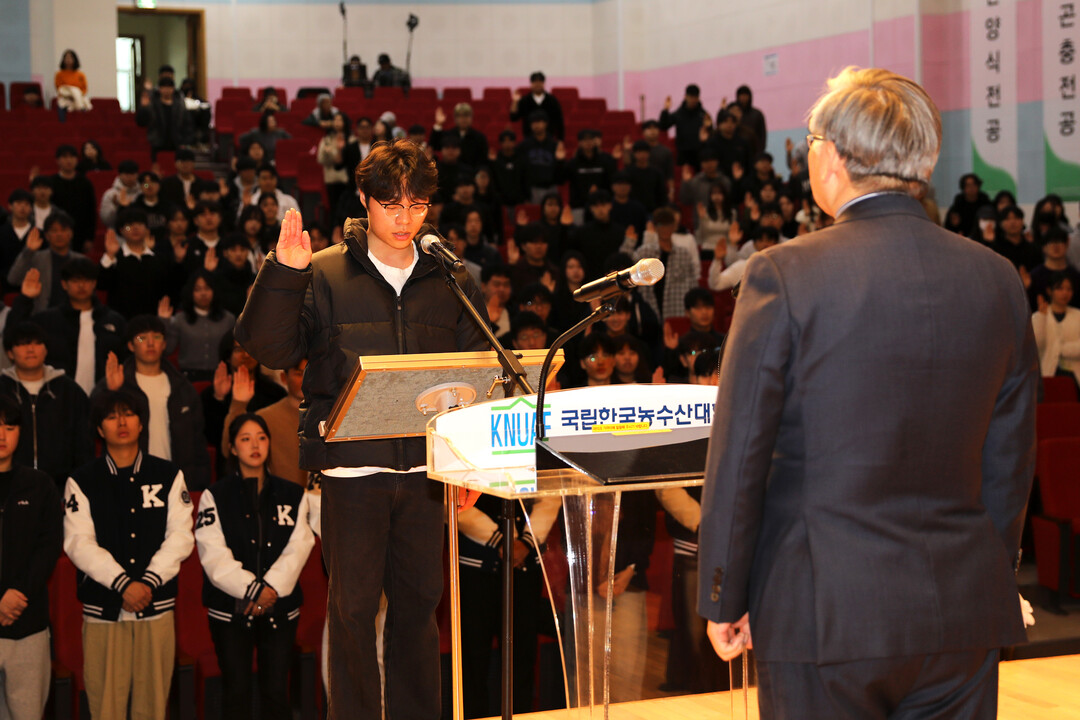 이번 입학식은 신입생 대표 선서, 총장 입학식사 등의 순서로 진행되었다. 농수산푸드테크전공 박영성 학생은 신입생을 대표하여 입학선서를 통해 “끊임없이 배우고 탐구하는 자세로 과학영농과 지속가능한 농어업 실천에 앞장서고, 학칙을 준수하면서 동료 학생과 서로 존중하고, 자신의 행동에 책임을 다하는 미래 농어업 리더로 성장하기 위해 최선을 다할 것”이라고 다짐했다.