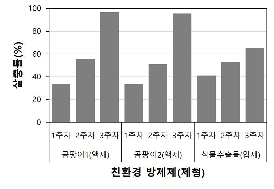 이에 국립산림과학원은 러브버그가 대발생했던 백련산과 계양산을 대상으로 유충의 서식 분포를 조사하고, 밀도 조절을 위한 친환경 방제제의 실내 방제 효과를 검증했다.