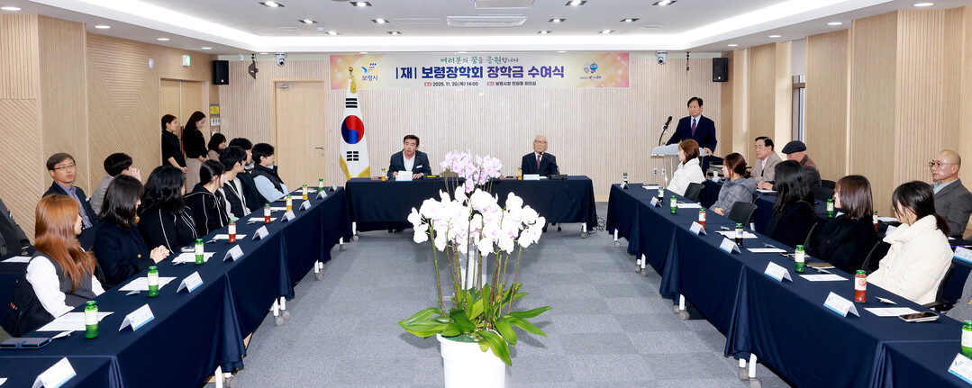 [농축환경신문] 보령시는 지난 20일 시청 민원동 회의실에서 김동일 보령시장, 윤찬 보령장학회 이사장, 학생 등 40명이 참석한 가운데 보령장학회 장학금 전달식을 개최했다.