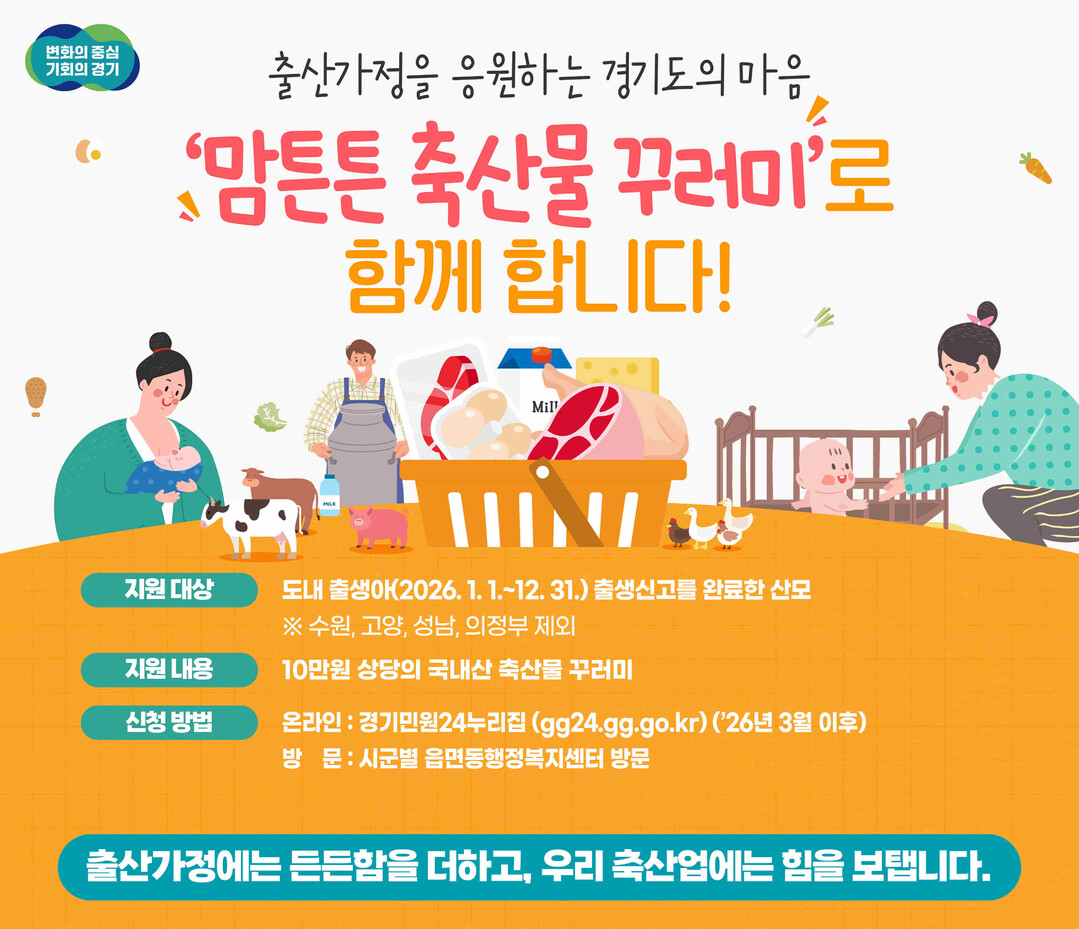 [농축환경신문] 경기도는 도내 27개 시군과 함께 ‘2026년도 맘튼튼 축산물꾸러미 지원사업’을 오는 3월부터 추진한다.