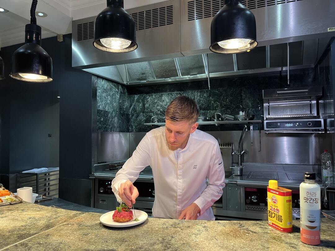 레스토랑 라뜰리에 하메 (L’atelier Ramey)의 셰프 니콜라 (Nicolas) 씨가 개발한 김치와 인삼을 활용한 요리