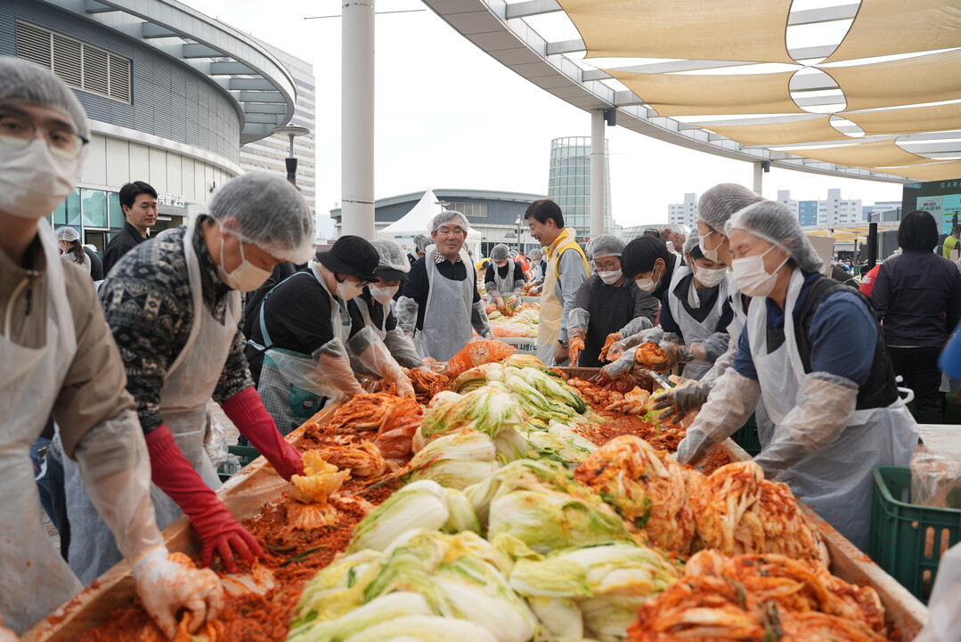 국가대표 농수산물 집산지에서 시민봉사자들과 김치 1만 상자 담금․기부