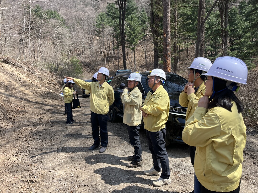 이날 서부지방산림청장은 조림사업 현장에서 나무 식재 상태와 작업 추진상황을 살피는 한편, 작업 전 안전회의(TBM) 실시 여부와 작업 일지 작성 관리 상태를 확인하는 등 안전관리 이행 실태를 점검했다.