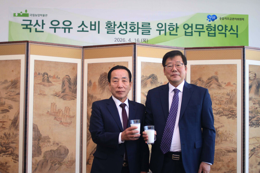 이승호 우유자조금관리위원장과 오경태 국립농업박물관장은 “국산 우유는 안전성과 영양 측면에서 세계적으로 경쟁력을 갖춘 식품”이며 “이번 협약을 통해 어린이들이 국산 우유의 가치를 자연스럽게 체득하고, 건강한 식습관 형성과 국산 농축산물 소비로 이어질 수 있도록 교육 기반을 강화해 나가겠다”고 밝혔다.