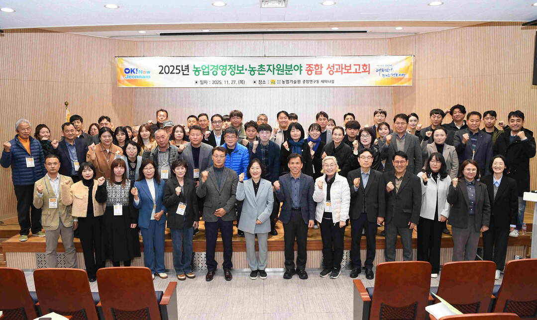 [농축환경신문] 전라남도농업기술원(원장 김행란)은 지난달 27일 도내 농업인과 시·군농업기술센터 관계자 등 80여 명이 참석한 가운데 ‘농업경영정보·농촌자원분야 성과보고회’를 성황리에 개최했다.