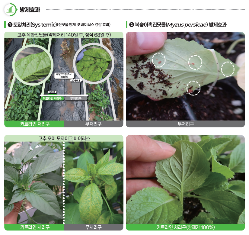 커트라인은 파종과 동시에 처리할 수 있어 해충 발생 초기부터 확산을 차단하고, 생육 단계 전반에서 작물이 건강하게 자랄 수 있는 환경을 만들어준다. 토마토황화잎말림바이러스(TYLCV)를 매개하는 담배가루이, 오이모자이크바이러스(CMV)를 전염시키는 진딧물 등 주요 매개충을 방제함으로써, 흡즙 및 바이러스 감여에 의한 모종의 피해를 줄여 줄 수 있다.