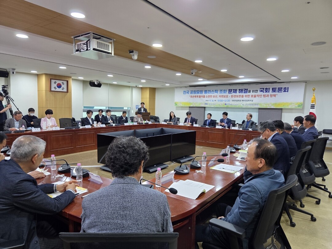 [농축환경신문] (사)한국화훼자조금협의회(회장 서용일)는 지난 16일 국회의원회관 제9간담회의실에서 더불어민주당 김정호 의원(경남 김해시을, 국회 기후에너지환경노동위원회 위원장), 녹색소비자연대전국협의회(이사장 전인수)와 함께 '전국 공원묘원 플라스틱 조화 문제 해결을 위한 국회 토론회'를 개최했다.