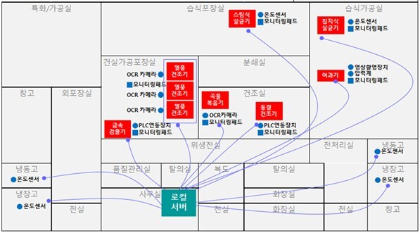우선 온도‧압력‧유량‧영상 감지기를 이용해 주요 중요관리점에 포함된 여과, 금속 검출, 살균 공정의 데이터를 자동 측정‧저장한다. 한계 기준을 벗어나면 경보가 울리고 관련 내용이 자동 기록된다.