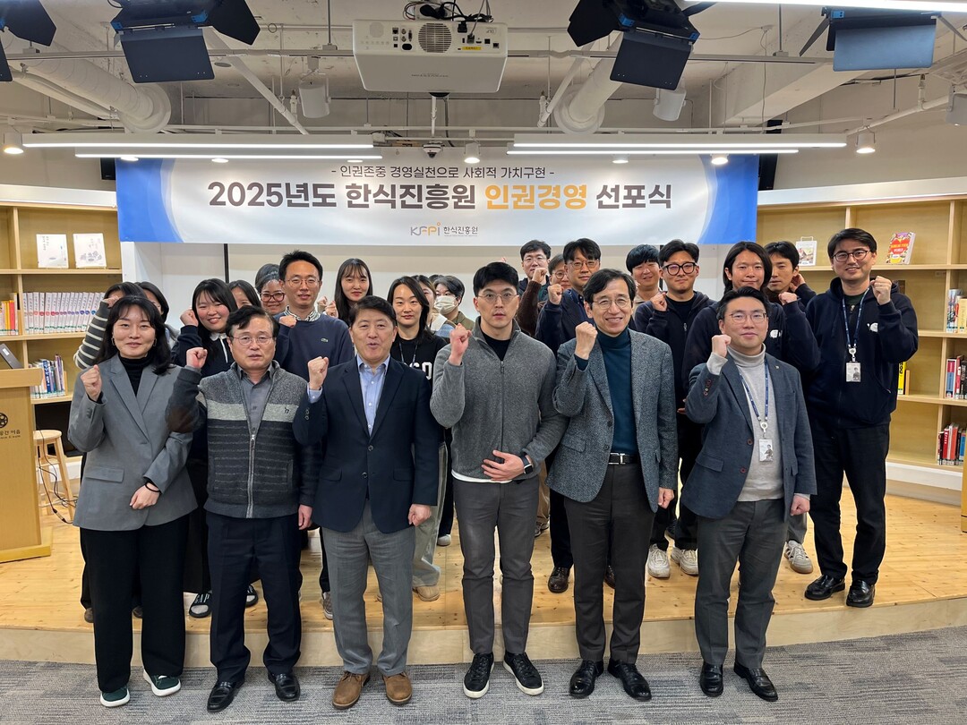 [농축환경신문] 한식진흥원은 11월 26일(수) 한식문화공간 이음에서 이규민 이사장 및 임직원 등이 참석한 가운데 '2025 한식진흥원 인권경영 선포식'을 개최했다.