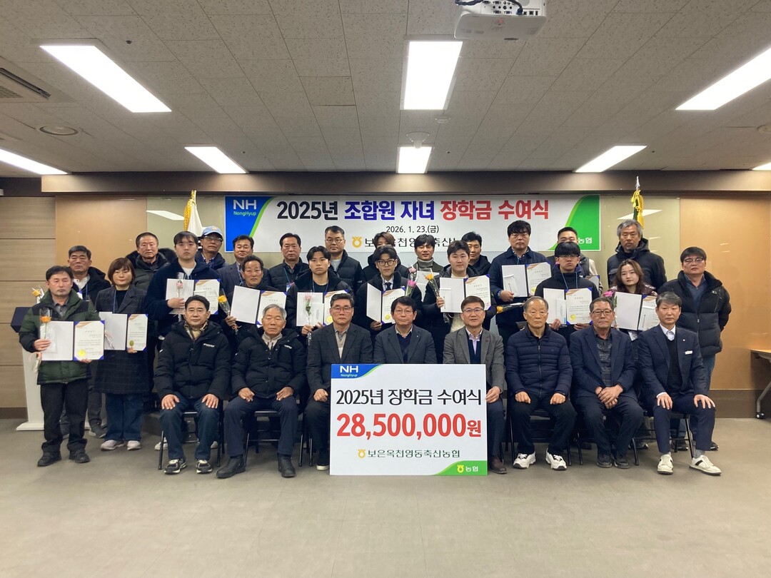 [농축환경신문] 보은옥천영동축협(조합장 구희선)은 23일 본점회의실에서 조합원의 복지증진과 지역사회 인재 양성을 위해 ‘2025년 조합원 자녀장학금 전달식’을 개최하였다.