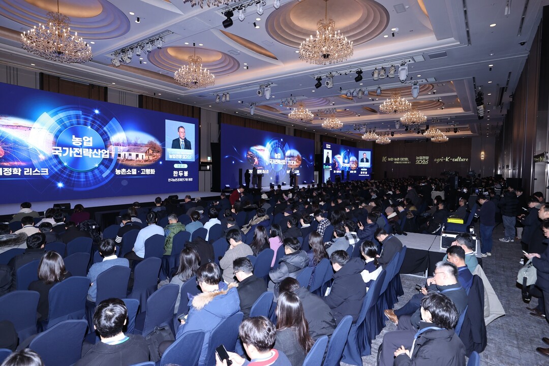 [농축환경신문] 한국농촌경제연구원(KREI, 원장 한두봉)이 주관하고 농림축산식품부(장관 송미령)가 후원하는 제29회 ‘농업전망 2026’이 1월 22일(목) 서울 잠실 롯데호텔 월드에서 열린다. 이번 행사는 ‘K-농업·농촌 대전환, 세계를 품고 미래를 열다’를 대주제로, 기후위기와 지정학적 리스크 등 다중위기 시대를 극복하기 위한 우리 농업의 현재와 미래를 다각도로 조명한다.