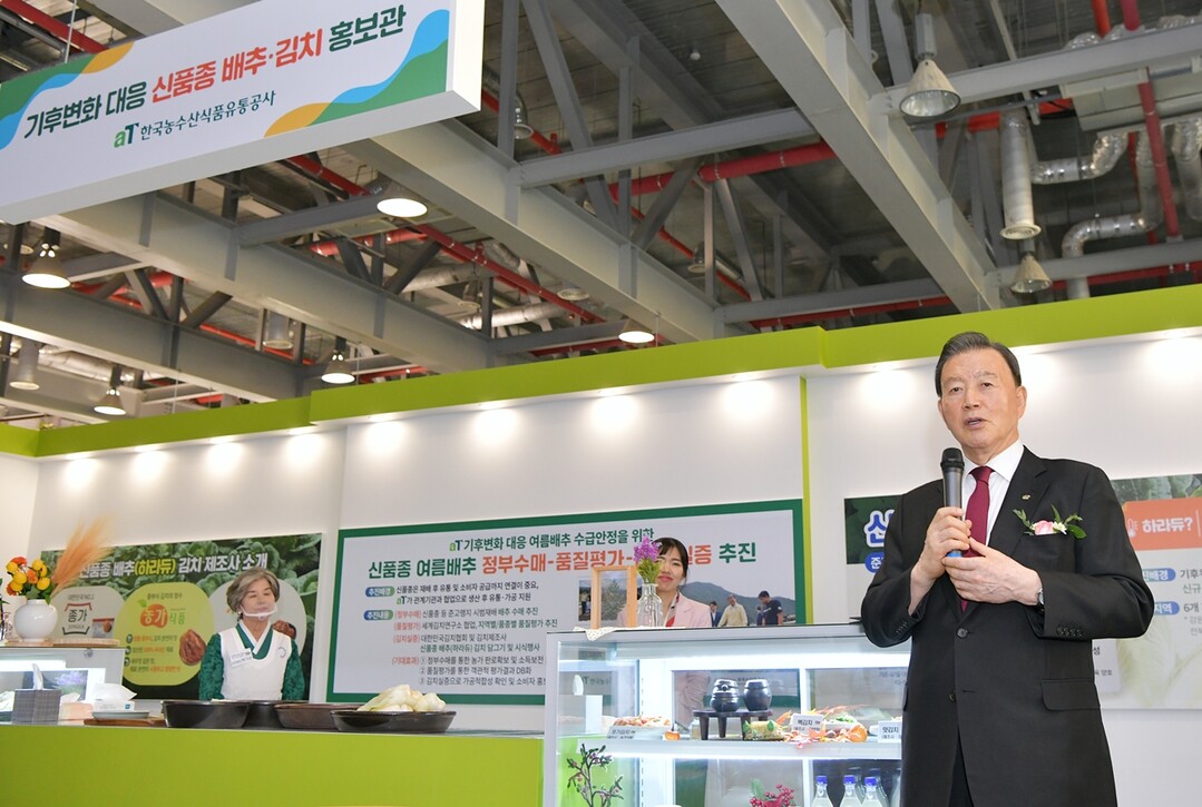 [농축환경신문] 한국농수산식품유통공사(aT, 사장 홍문표)는 23일부터 7일간 나주에서 진행되는 ‘국제농업박람회’에서 기후변화 대응 신품종 배추‧김치 홍보관을 운영한다.