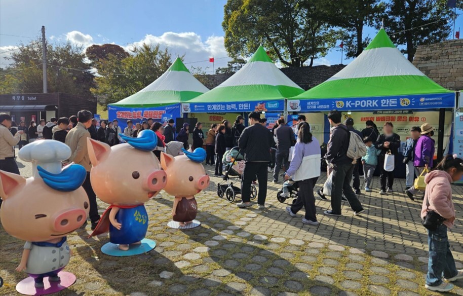 [농축환경신문] 한돈자조금관리위원회(위원장, 손세희, 이하 한돈자조금)가 지난 10월 30일부터 11월 2일까지 충남 홍성군 홍주읍성 일대에서 열린 '2025 홍성글로벌바비큐페스티벌'에 참가해 4일간 준비한 한돈 물량 전량 판매를 기록하며 성황리에 행사를 마무리했다.