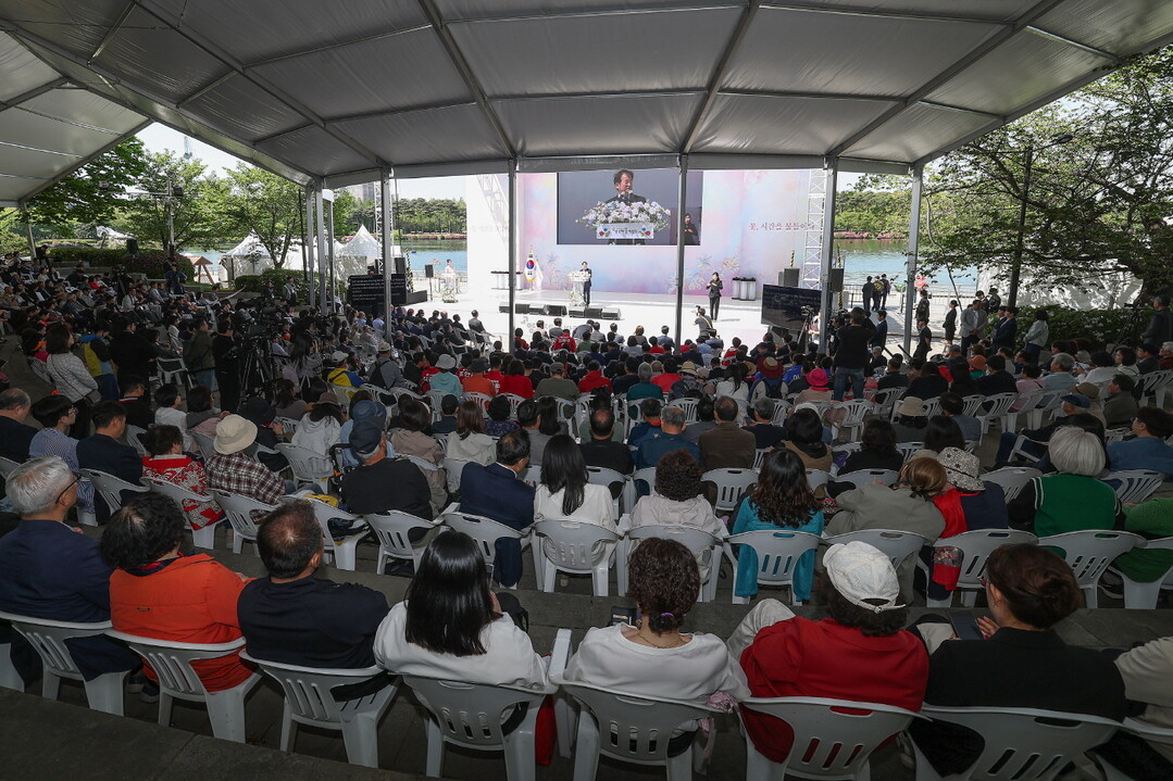 행사는 개회선언과 고양시립합창단의 축하공연을 시작으로 개회사, 오프닝 세리머니(버튼 이벤트·LED 개화 영상), 가수 김다현의 축하무대가 이어져 행사를 분위기를 띄웠다.