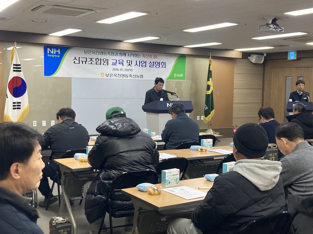 [농축환경신문] 보은옥천영동축산농협(조합장 구희선)이 29일 임직원들이 참석한 가운데 2025년 신규 가입한 조합원 44명을 대상으로 신규조합원 교육 및 조합 사업 설명회를 개최했다.