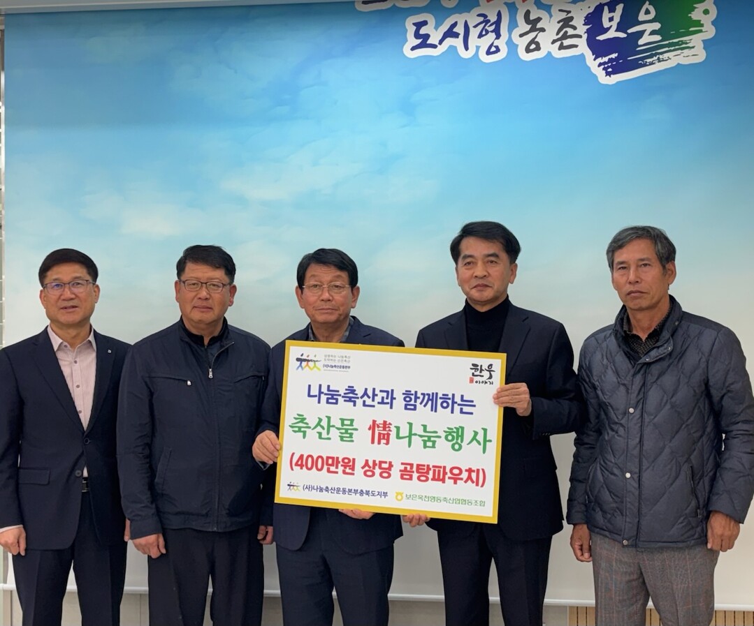 [농축환경신문] 보은옥천영동축협(조합장 구희선)과 (사)나눔축산운동본부는 지난 17일 보은군을 방문해 관내 취약계층과 소외계층을 위해 400만원 상당의 축산가공품 사골곰탕파우치를 기탁했다.