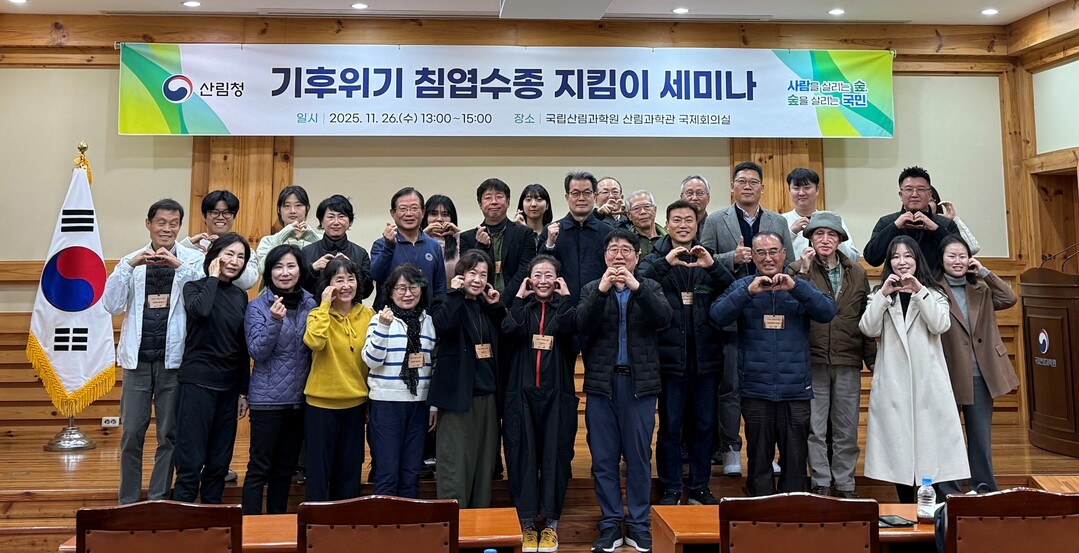 [농축환경신문] 산림청(청장 김인호)은 국립산림과학원 국제회의실에서 ‘기후위기 침엽수종 지킴이 세미나’를 열고, 기후위기 대응을 위한 멸종위기 침엽수종 보전 전략과 2026년도 시민 참여 기반 활동 계획을 논의했다.