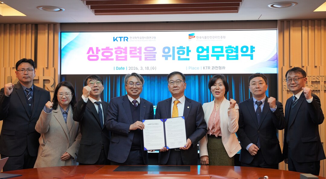 [농축환경신문] 한국식품안전관리인증원(원장 한상배, 이하 해썹인증원)과 (재)한국화학융합시험연구원(원장 김현철, 이하 KTR)은 18일 경기 과천 KTR 본원에서 ‘할랄식품 인증기관 인정 지원’을 위한 업무협약(MOU)을 체결했다.