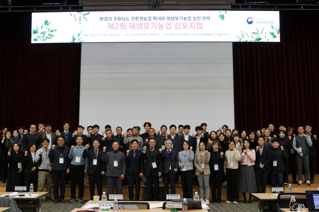 [농축환경신문] 농촌진흥청(청장 이승돈)은 한국유기농업학회와 함께 12월 11일 본청 국제회의장에서 ‘제2회 2025 재생유기농업 학술토론회’를 열었다.