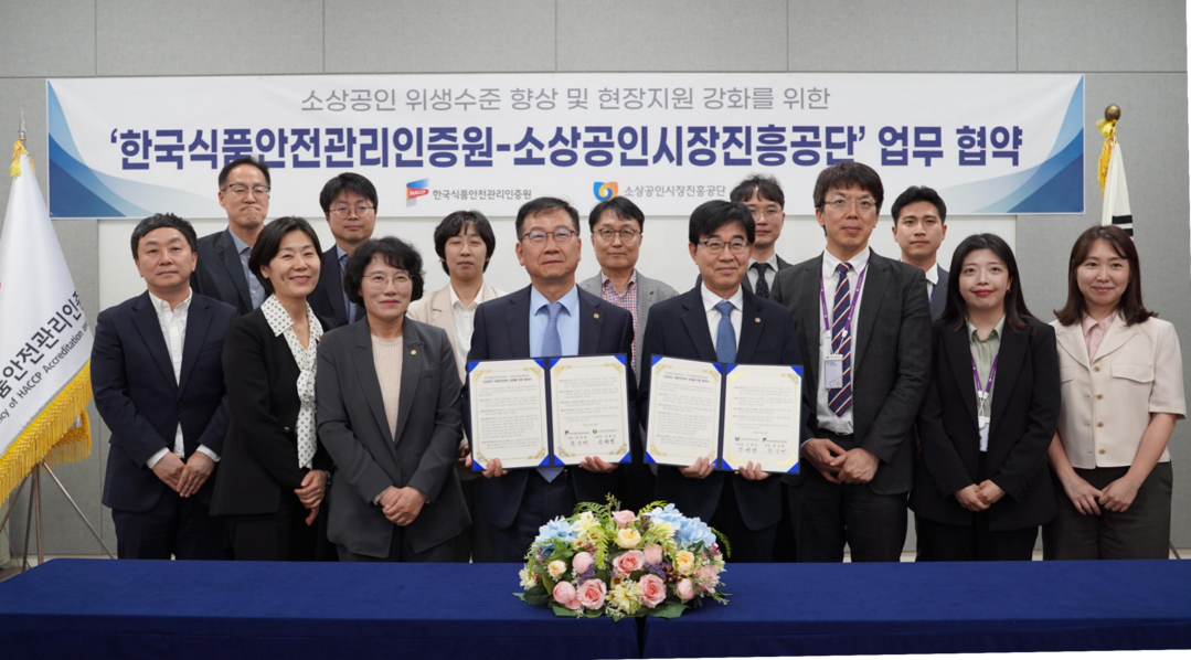 [농축환경신문] 한국식품안전관리인증원(원장 한상배, 해썹인증원)과 소상공인시장진흥공단(이사장 인태연, 소진공)은 4월 28일(화)에 소상공인 외식 업소 등의 위생 관리 수준을 높이고 안전한 외식 환경을 조성하기 위해 업무협약(MOU)을 체결했다.