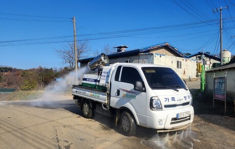 전국 지역축협 공동방제단(540개반)은 상시 축산농가 방문 소독 중이며 소규모 농가는 연간 92만회를 목표로 집중소독을 진행 중이다.