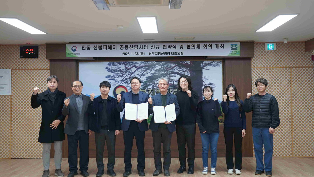 [농축환경신문] 남부지방산림청은 23일 안동 산불피해지 복구사업의 체계적인 추진을 위한 공동산림사업 신규 협약을 체결하고, 기존 협약기관과 함께 협의체 회의를 개최했다.