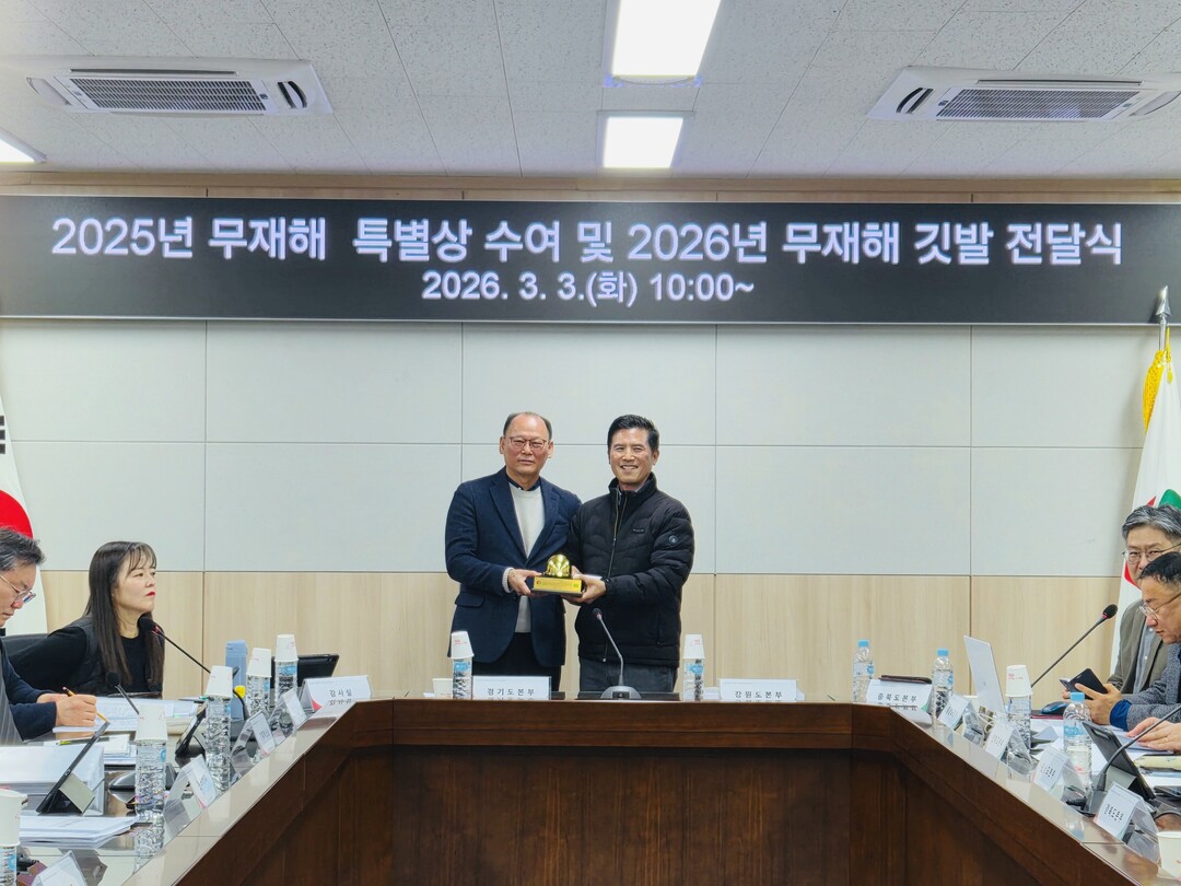 전달식에서는 2025년 한 해 동안 단 한 건의 안전사고도 발생하지 않은 경북도본부에 ‘무재해 특별상’이 수여됐다. 경북도본부는 체계적 안전점검과 구성원의 자율적 실천으로 ‘안전 제1의 가치’를 현장에서 구현한 공로를 인정받았다.