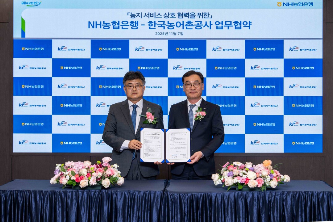 [농축환경신문] 한국농어촌공사(사장 김인중, 이하 ‘공사’)는 11월 7일 서울 중구 농협은행 본사에서 NH농협은행(은행장 강태영, 이하 ‘농협은행’)과 농지 서비스 상호 협력을 위한 업무협약(MOU)을 체결했다고 밝혔다.