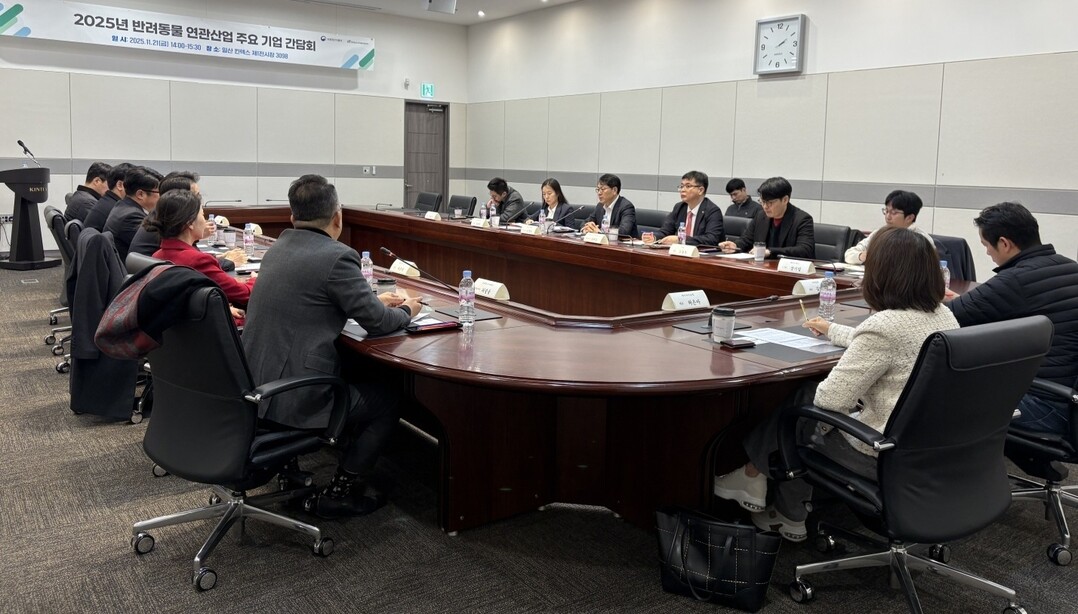 [농축환경신문] 김정욱 농림축산식품부 농업혁신정책실장은 지난 21일 오후 일산 킨텍스에서 반려동물사료, 펫헬스케어, 펫테크 등 반려동물 연관산업에 종사하는 12여 개 기업과 간담회를 열고 산업 발전 방안을 논의했다.