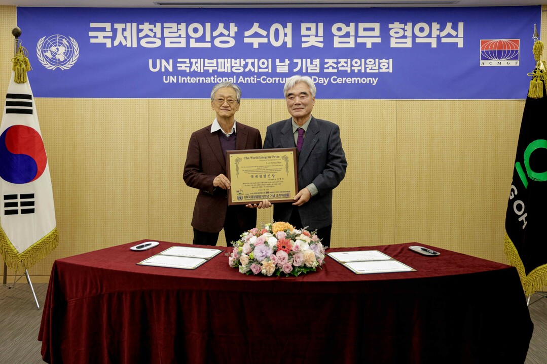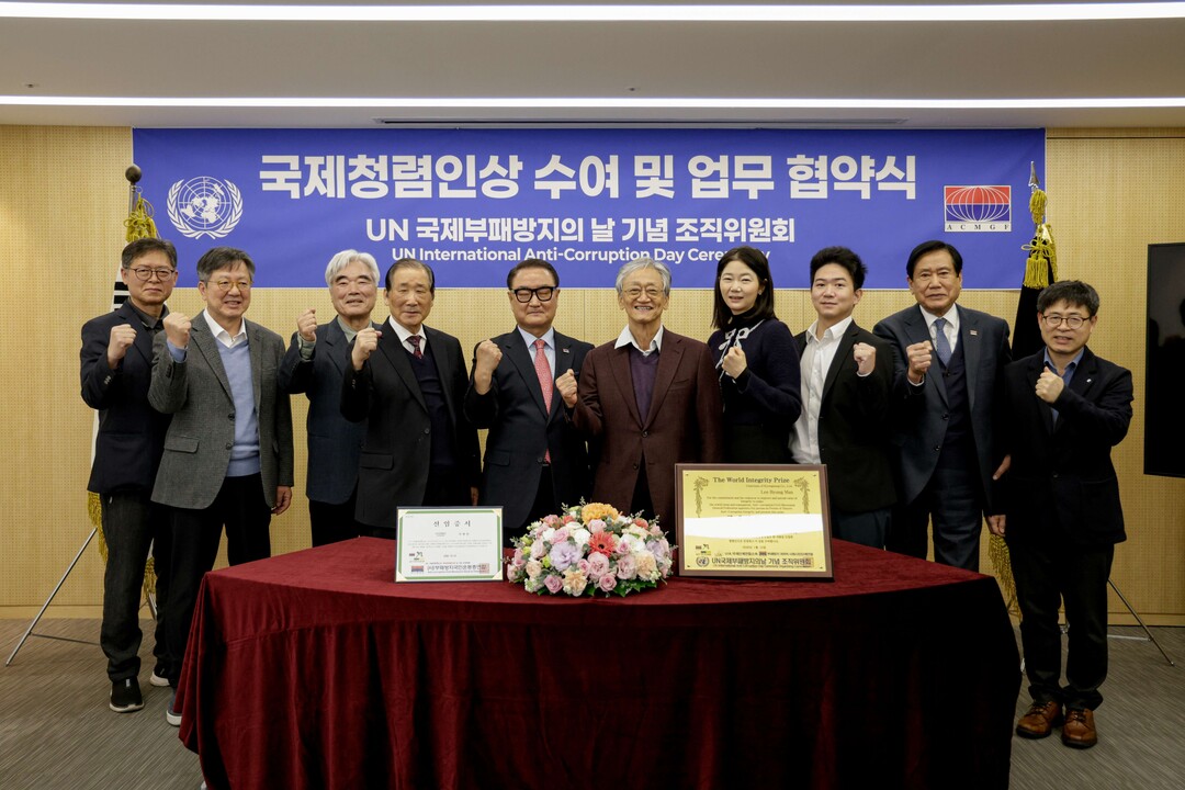 국제청렴인상은 부패방지국민운동총연합과 전국 300여 개 시민사회단체가 매년 청렴 가치 확산과 사회 발전에 기여한 인물을 선정해 수여하는 상이다. 부패방지국민운동총연합은 UIA(국제단체연합) 소속 비영리법인으로, UN 국제부패방지의날 기념 조직위원회의 국내 활동을 총괄하며 청렴 문화 확산을 이끌고 있다.