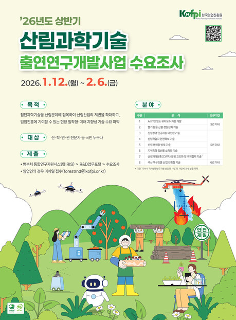 [농축환경신문] 농림식품기술기획평가원(원장 노수현, 이하 농기평)은 2026년도 농림축산식품 연구개발(R&D) 신규과제를 공고하고 접수를 시작한다고 5일 밝혔다. 7개 신규사업 예산 287억 원을 포함해 총 12개 사업, 456억 원 규모로 신규 과제를 지원한다.