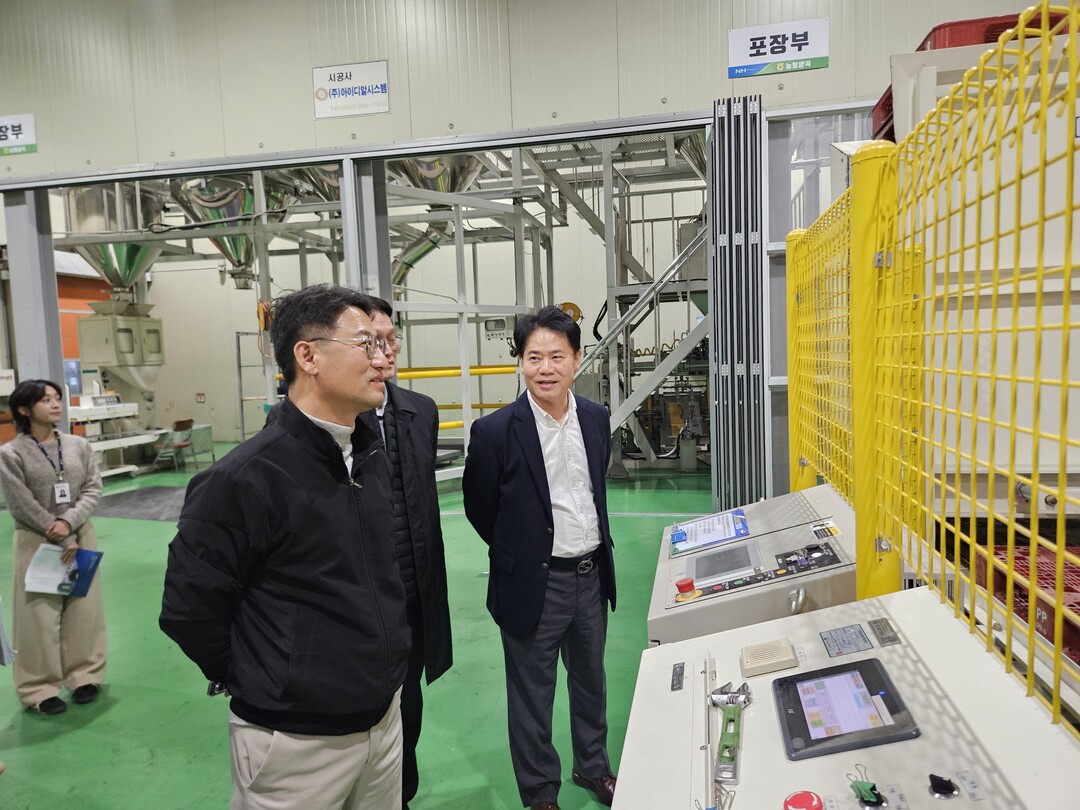 [농축환경신문] 박정훈 농림축산식품부 식량정책실장은 18일 오후, 전북 익산시 함열읍에 위치한 농협양곡 익산통합미곡종합처리장(RPC)을 방문하여 신동진 쌀 생산 현황을 점검하고, 신동진 정부 보급종 공급 계획을 설명하며 현장 의견을 청취했다.
