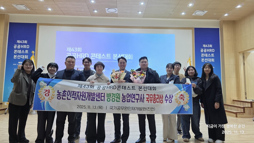[농축환경신문] 농촌진흥청(청장 이승돈)은 국가공무원인재개발원이 주최한 ‘제43회 공공인적자원개발 경연(공공HRD 콘테스트)’에서 교육과정과 교수학습 분야에서 각각 국무총리상 등 주요 상을 수상했다고 밝혔다.