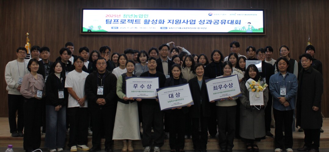 [농축환경신문] 농림축산식품부(장관 송미령, 이하 농식품부)와 농림수산식품교육문화정보원(원장 윤동진, 이하 농정원)은 27일, ‘2025년 청년농업인 팀 프로젝트 성과공유대회’를 개최했다.
