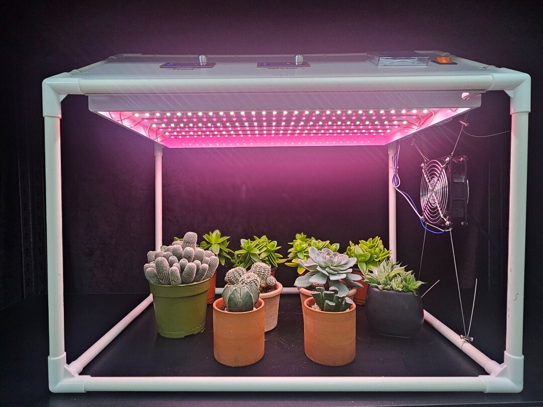 먼저 다육식물 생장에 적합한 적색과 백색 LED를 3대 2 비율로 혼합한 조명을 적용해 웃자람을 줄이고 잎 색 변화를 최소화했다. 또 내부에 환기팬을 장착해 공기 순환을 유도함으로써 잎 수가 늘어나는 등 생육 개선 효과를 도모했다.