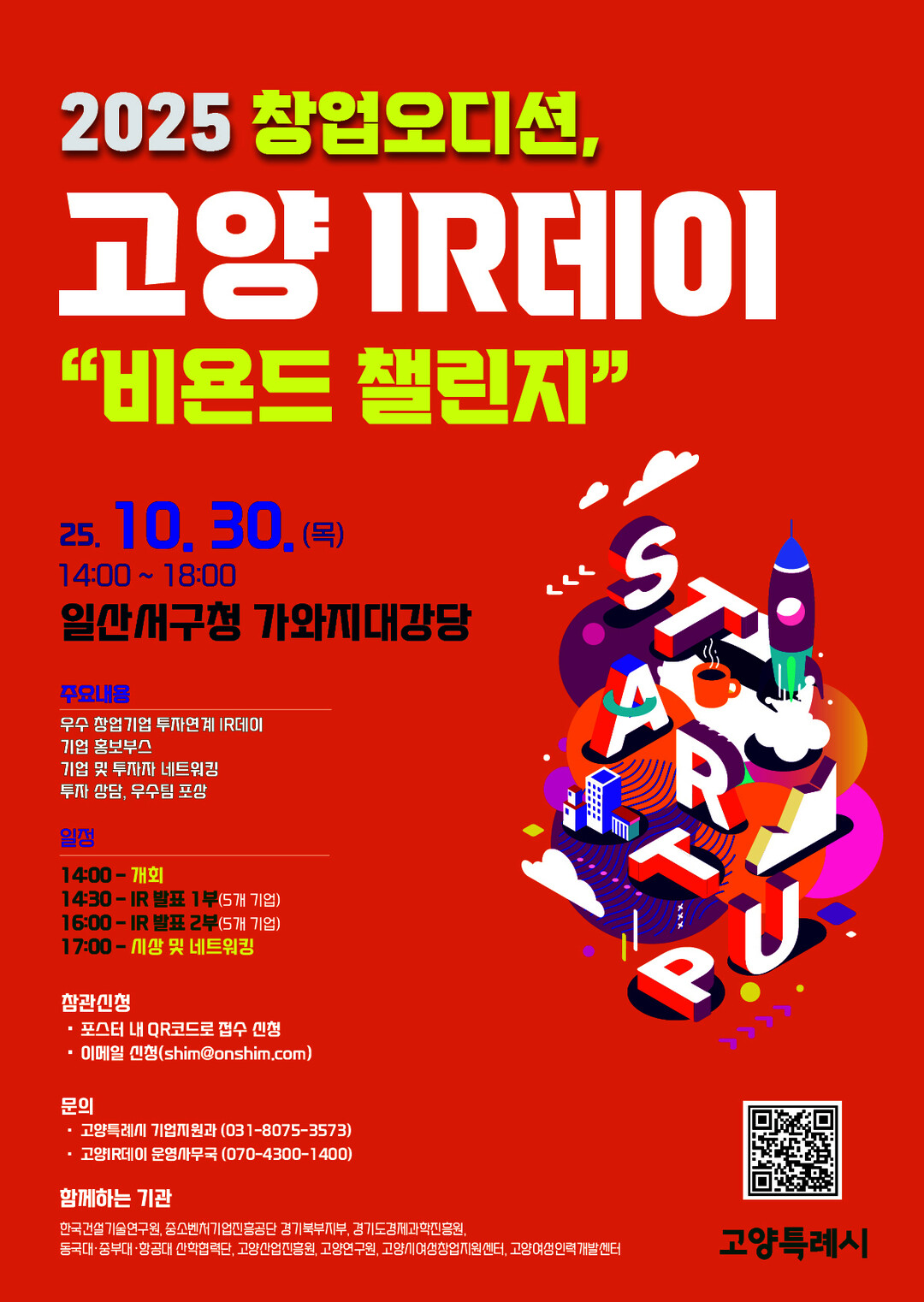 행사참여 문의 및 기타 자세한 사항은 고양원스톱창업플랫폼 또는 고양 아이알(IR)데이 운영사무국으로 연락하면 된다.