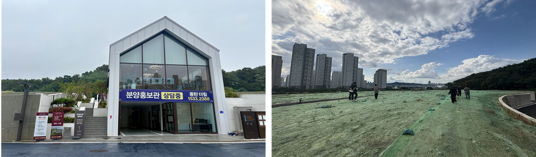 [좌측] 현장홍보관(부대시설), [우측] 필지 상부전경
