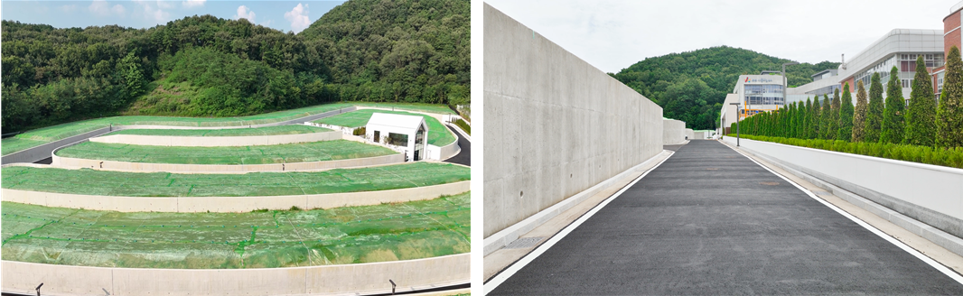 [좌측] 필지별 단차 및 왕배산, [우측] 벙커형 주차장 및 단지내 도로