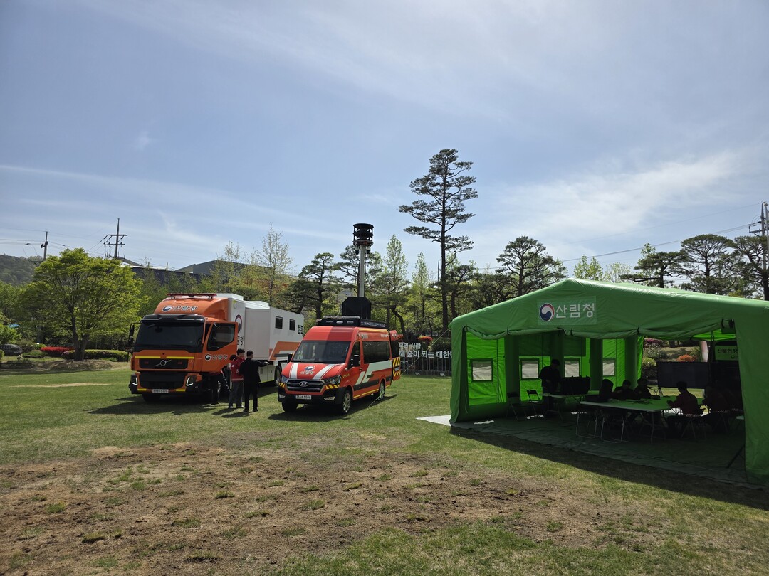 특히 산불지휘차량, 에어텐트, 통신장비(PS-LTE 등), 전산장비와 함께 이번에 신규로 도입된 고성능 통신지휘차량 및 회복지원차량을 활용하여 대응인력 기능 숙달은 물론, 실제 산불현장에서의 작동성을 한층 강화하는 데 중점을 두었다.